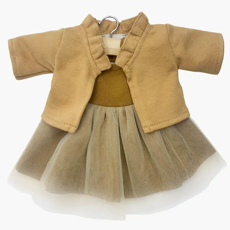 Beautiful little Rosella tutu dress for your little one's doll to twirl away in. Available in a "Havana" color with matching Claudia Cardigan.