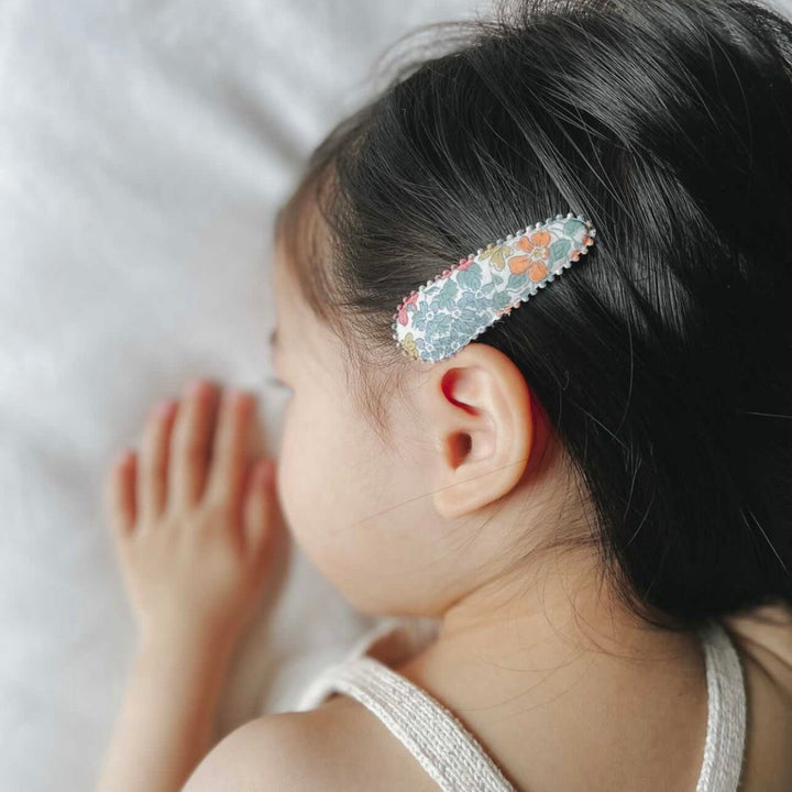 The perfect little girls hair clip for accessorizing, these are sold in sets of two timeless hair clips and are finished using a range of Liberty London prints along with a selection of fabrics designed by The Rifle Paper Co.