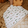 Our Alpha fitted crib sheet is made from snuggly soft stretch cotton jersey. Comes with a matching drawstring bag which can be used for other multi-purposes.