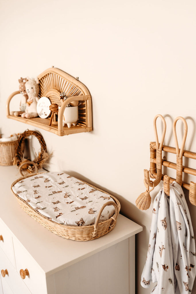 Our Fox Fitted Bassinet Sheet can also be used as a Change Pad Cover and is made from snuggly soft stretch cotton jersey. Comes with a matching drawstring bag which can be used for other multi-purposes.