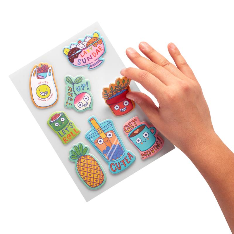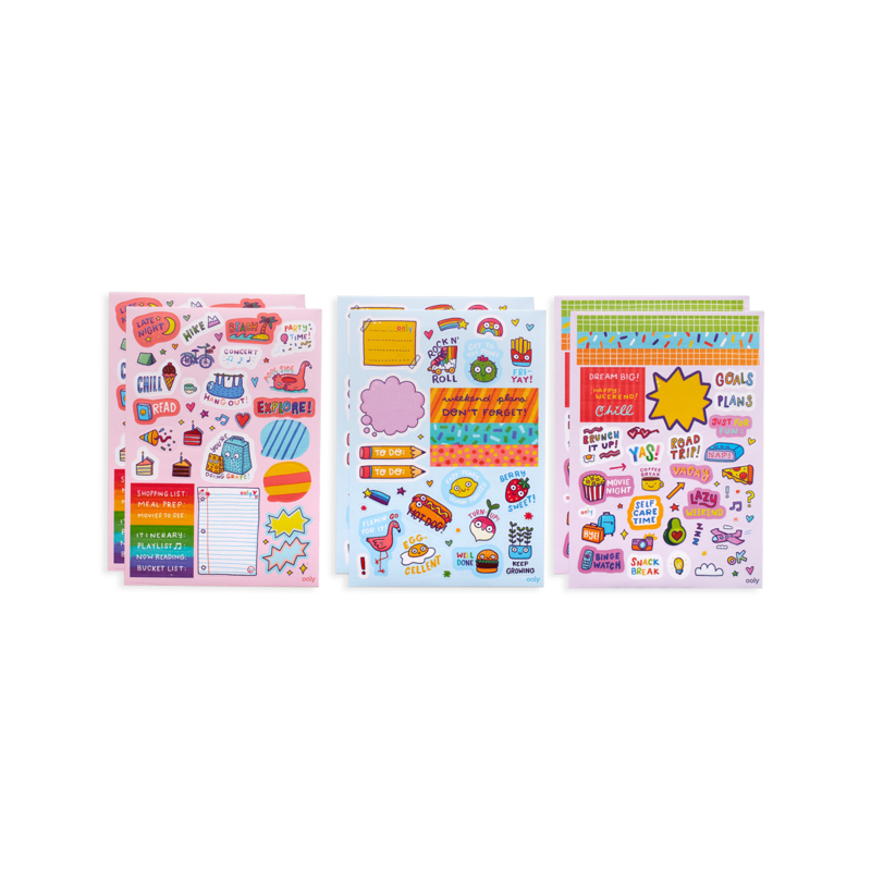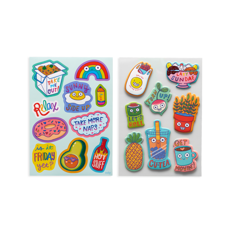 Quirky Fun Sticker Stash set of stickers is the perfect collection for planners, journals and decorating. Each set has 6 paper sticker sheets, 1 vinyl sticker sheet, 1 puffy sticker sheet plus a handy reusable folder for safe keeping. With over 200 delightful stickers featuring smile-bringing delicious donuts, fast food faves, and colorful office supplies, you will be able to fill your planner and more! Decorate the family calendar or share some of the fun with friends on a note or letter. Let your sticker fun begin!