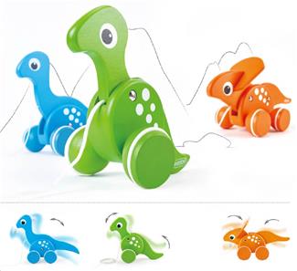 This adorable pull along T-Rex encourages children to play and walk in a fun way! Pull the string and this cute little dinosaur will tag along, wriggling its head as your child heads off on their walking adventures!