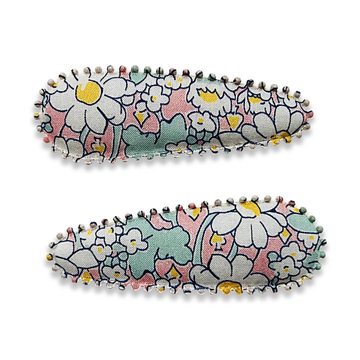 The perfect little girls hair clip for accessorizing, these are sold in sets of two timeless hair clips and are finished using a range of Liberty London prints along with a selection of fabrics designed by The Rifle Paper Co.