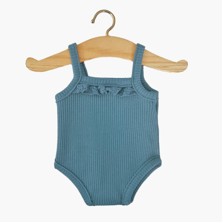This adorable ribbed tank bodysuit in Peacock, features wide straps with lace detailing on the front. Perfect for those summer outfits!