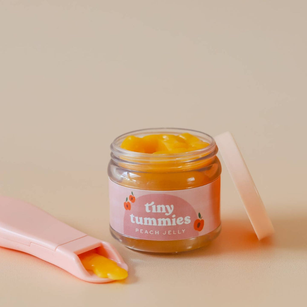 Feed your doll this delicious Tiny Tummies Peach Jelly food at meal times. Put the magic spoon in the jar and watch the food land on your spoon. Feed your doll and surprise, the food disappears as your doll eats!