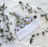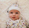 The acorn tie knot beanie coordinates with the matching bamboo acorn footed romper/sleeper also available.