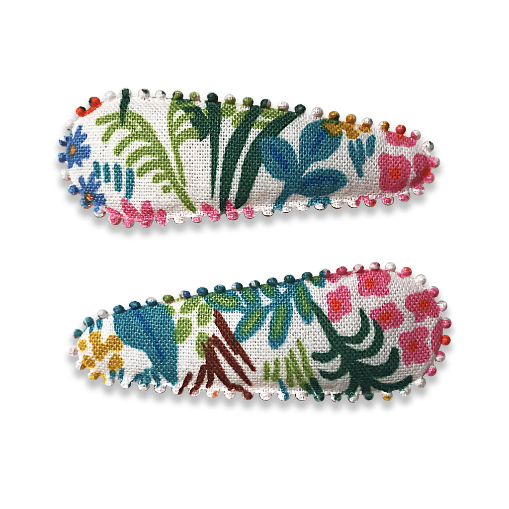 The perfect little girls hair clip for accessorizing, these are sold in sets of two timeless hair clips and are finished using a range of Liberty London prints along with a selection of fabrics designed by The Rifle Paper Co.