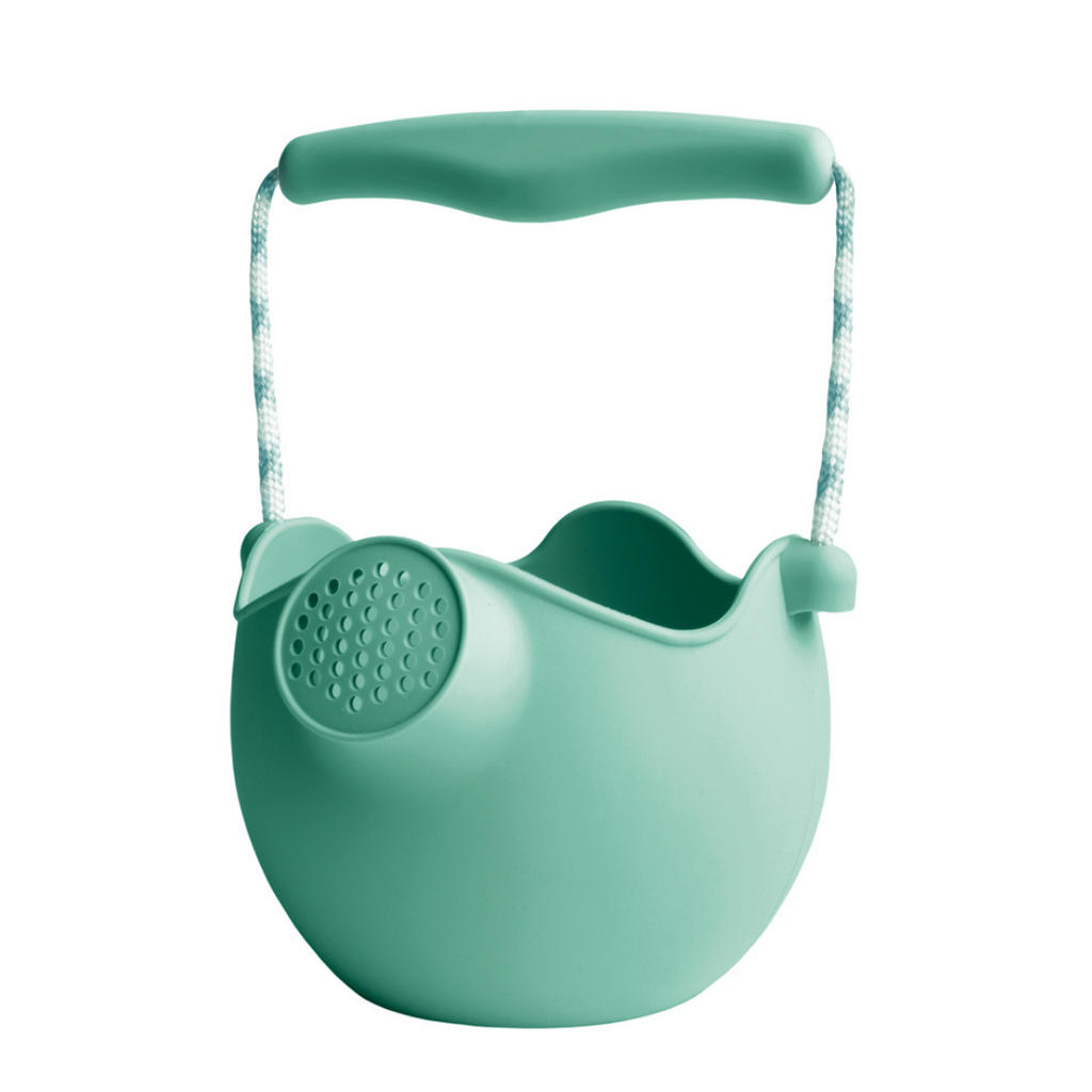 A wonderful easy to carry 100% silicone (super soft and bendy) watering can in mint with rope and easy grip handle.