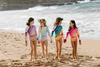 Retro-inspired and vacation-ready, this swimsuit keeps your little one protected and stylish, whether they're surfing, swimming, or playing in the summer sun. Our classic scoop back and luxurious velvet ties maximize flexibility and comfort for easy changing in and out while wet. Made from this highest quality UPV protected swim material that resists pilling, even with heavy wear.