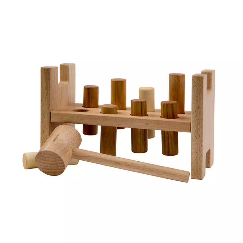 Wooden Montessori Natural Pound-A-Peg Toy. Fun game with a wooden hammer and natural pegs gives a lot of joy. Helps with hand/eye coordination and fine motor skill development.